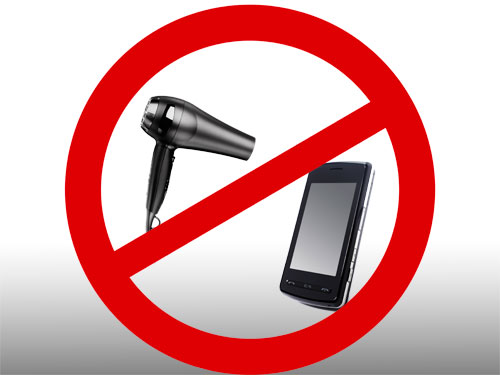 - Không bật hoặc sử dụng điện thoại trong bất kỳ trường hợp nào.